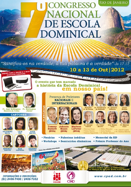 Bem, vamos ao que interessa. A CPAD vai promover mais um Congresso de Escola Dominical. Daqueles aonde se vende muito e se aprende bastante, mas se pratica pouco. É que boa parte das teorias são inexequíveis dados os parcos recursos da EBD do Oiapoque ao Chuí, mas o assunto não é esse, quem sabe mais à frente… O que quero ressaltar é que até pouco tempo atrás eles faziam um cartaz e colocavam as mulheres à parte, como se aquilo que elas vão fazer: ministrar, ensinar, doutrinar, os deixasse envergonhados. Agora, chegaram ao ponto: equipararam! Viva! Olhem lá o quadro de preletores nacionais e internacionais!? Tudo igual: tamanho da foto (exceção para os estrangeiros, sorry!), fonte, título, nome, função!