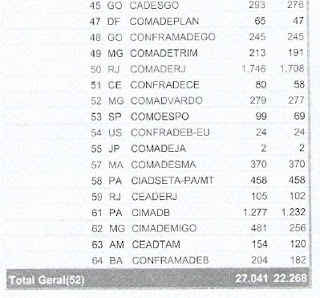 Cito, de início, mais seis que formalmente estão com a chapa oponente: CEADEMA (Maranhão); CEADER (Rio de Janeiro), COMADERJ (Rio de Janeiro), COMADETRIM (Minas Gerais – Triângulo Mineiro), COMADVARDO (Minas Gerais – Vale do Aço) e CIADESCP (Santa Catarina).