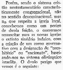 Então, tudo aquilo que muitas pessoas no Brasil pensam como divino e biblicamente apoiável rui diante desta constatação. O padrão bíblico de governo da Igreja cristã é congregacional nos moldes batistas. Aqui e acolá nota-se a influência do Espírito Santo sobre determinadas decisões. Mas tais se apoiam num período de oração e jejum. No mais, ao contrário do judaísmo, a Igreja é democrática. É com o tempo que a feição muda e o papado se instala, arvorando-se em poder e dinheiro, como disse o escritor acima.