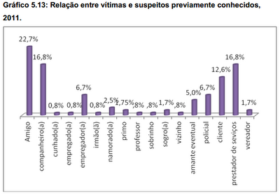 Somando aqueles 22,7% dos amigos + 16,8% dos companheiros + 12,6% dos clientes + 5% dos amantes eventuais e + 2,5 dos namorados, temos a incrível soma de 59,6%. Ou seja, a maioria esmagadora dos atentados ocorre no grupo ao qual o gay pertence, desfazendo totalmente o mito homofóbico.