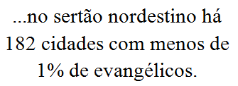 confiáveis da quantidade de membros em nossas igrejas. Aliás, as Convenções também não, espelhadas, talvez, numa indolência generalizada. É a hora de se fazer um levantamento nacional e coletar estas informações junto às igrejas, fazendo a cobrança adequada por dados com qualidade e eficiência. Como desdobramento desta ação podemos delinear aonde investiremos tempo e recursos na evangelização e em outros esforços de cunho estratégico. Há alguns anos li, na Ultimato, que no sertão nordestino há 182 cidades com menos de 1% de evangélicos. Desconfio que os percentuais não sejam muito animadores em algumas cidades do Agreste também. Claro, claro, há o problema da desconfiança de compartilhar tais informações, mas a CGADB, amparada por seu estatuto, poderia superar tal obstáculo;