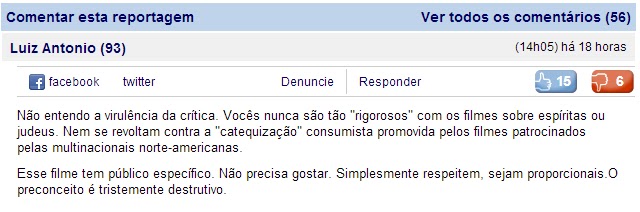 De onde não se espera, sai um filme que está incomodando a crítica cinematográfica brasileira. O filme de R.R. Soares rendeu uma reportagem no UOL, cuja acusação maior foi não ter negros no elenco!? Está entre os maiores sucessos de bilheteria brasileira, ganhando de 007 – Operação Skyfall , não pediu incentivos ao Governo, pois seria, certamente, negado, foi rodado nos EUA e tudo que eles tinham a fazer era dizer que não foi incluído nenhum negro? Esses tempos politicamente corretos… E foram extremamente grosseiros ao informar que o pastor pediu que seus fieis levassem um amigo para assistir o filme e orassem pelas produções nacionais, sempre focadas em divulgar peitos e bundas, mundo afora. Haja preconceito.