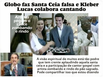 Causou furor na internet a informação [não confirmada por mim que não assisto novelas] que a Globo promoveu uma Ceia do Senhor, no contexto de determinado culto numa novela, e Kleber Lucas cantou nela. Os evangélicos se irritaram pela ordem: