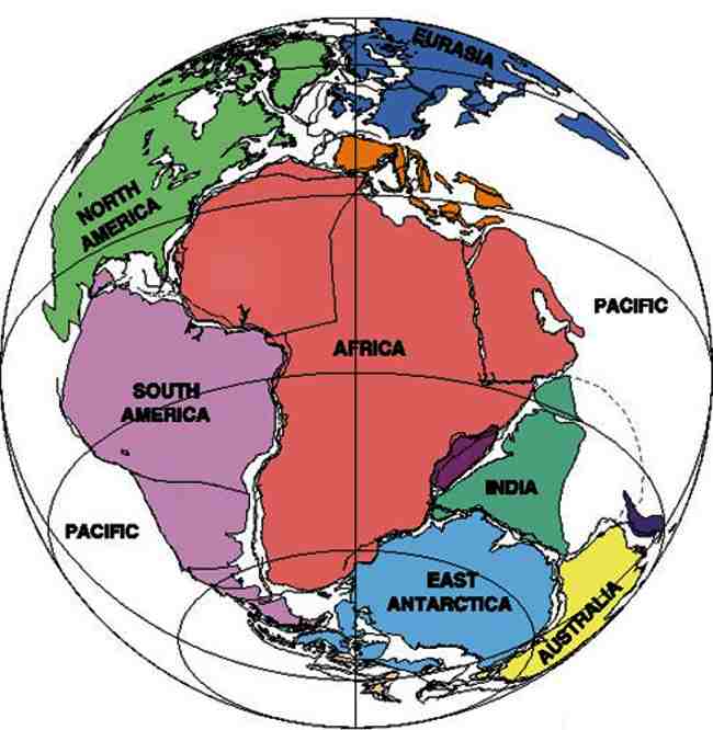 8) O continente era único até Gênesis 10:25, quando Deus repartiu a Terra e os continentes estão em contínuo afastamento. Abaixo, representação da divisão inicial a partir da Pangeia;